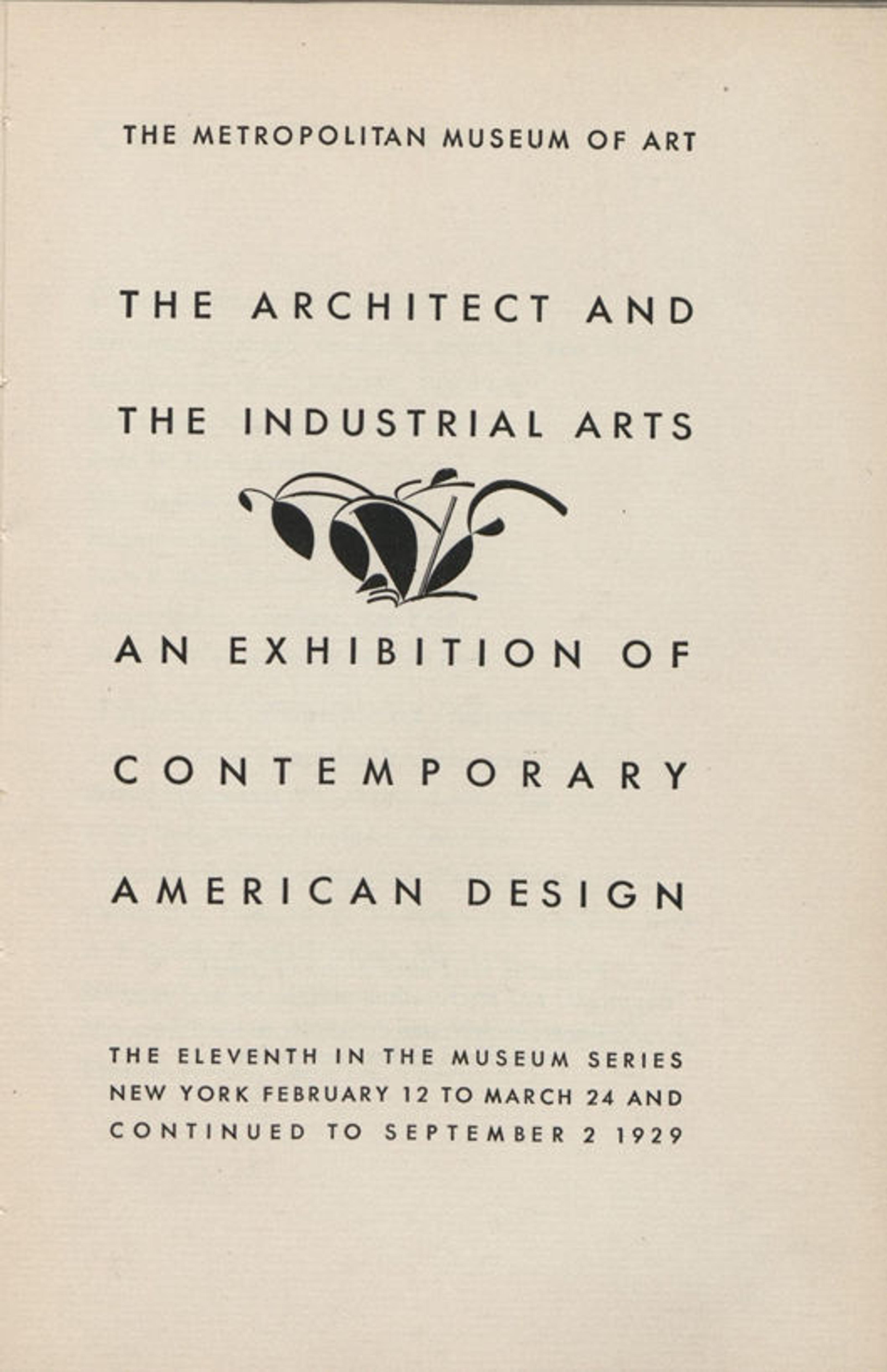 The architect and the industrial arts; an exhibition of contemporary American design (detail of title page). New York: The Metropolitan Museum of Art, 1929. Thomas J. Watson Library (159.4 N486 1929)