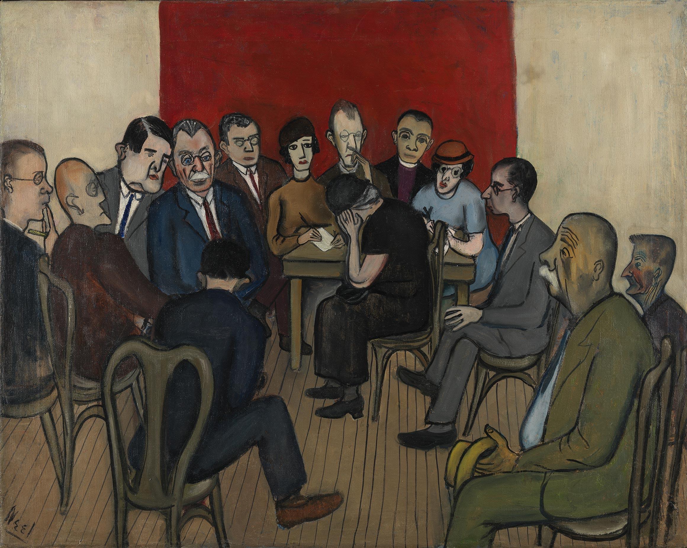 Alice Neel (American, 1900–1984). Investigation of Poverty at the Russell Sage Foundation, 1933. Oil on canvas, 24 ¼ × 30 ¼ in. (61.3 × 76.5 cm). Pennsylvania Academy of the Fine Arts. Art by Women Collection, Gift of Linda Lee Alter © The Estate of Alice Neel