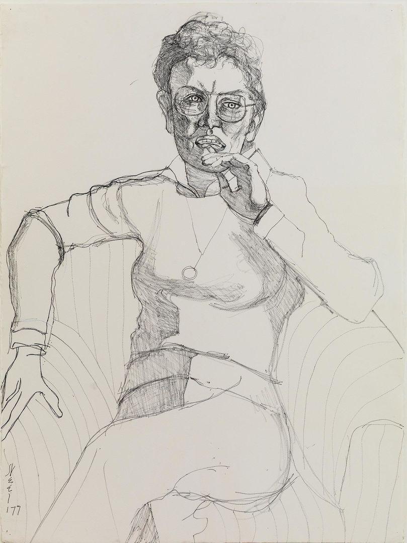 Alice Neel (American, 1900–1984). Mary Garrard, 1977. Graphite on paper, 30 ¼ × 22 ½ in. (76.5 × 57.2 cm). Estate of Alice Neel © The Estate of Alice Neel