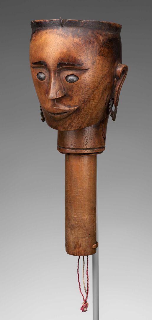 Si gale-gale (puppet head), 19th–20th century. Toba Batak artist(s), Indonesia, Sumatra, Sumatra. Wood, copper alloy, lead alloy, water buffalo horn, paint, H. (without pull rope) 13 1/4 in. x W. 6 in. x D. 6 1/2 in. (33.7 x 15.2 x 16.5 cm). The Metropolitan Museum of Art, New York, Gift of Fred and Rita Richman, 1987 (1987.453.6)