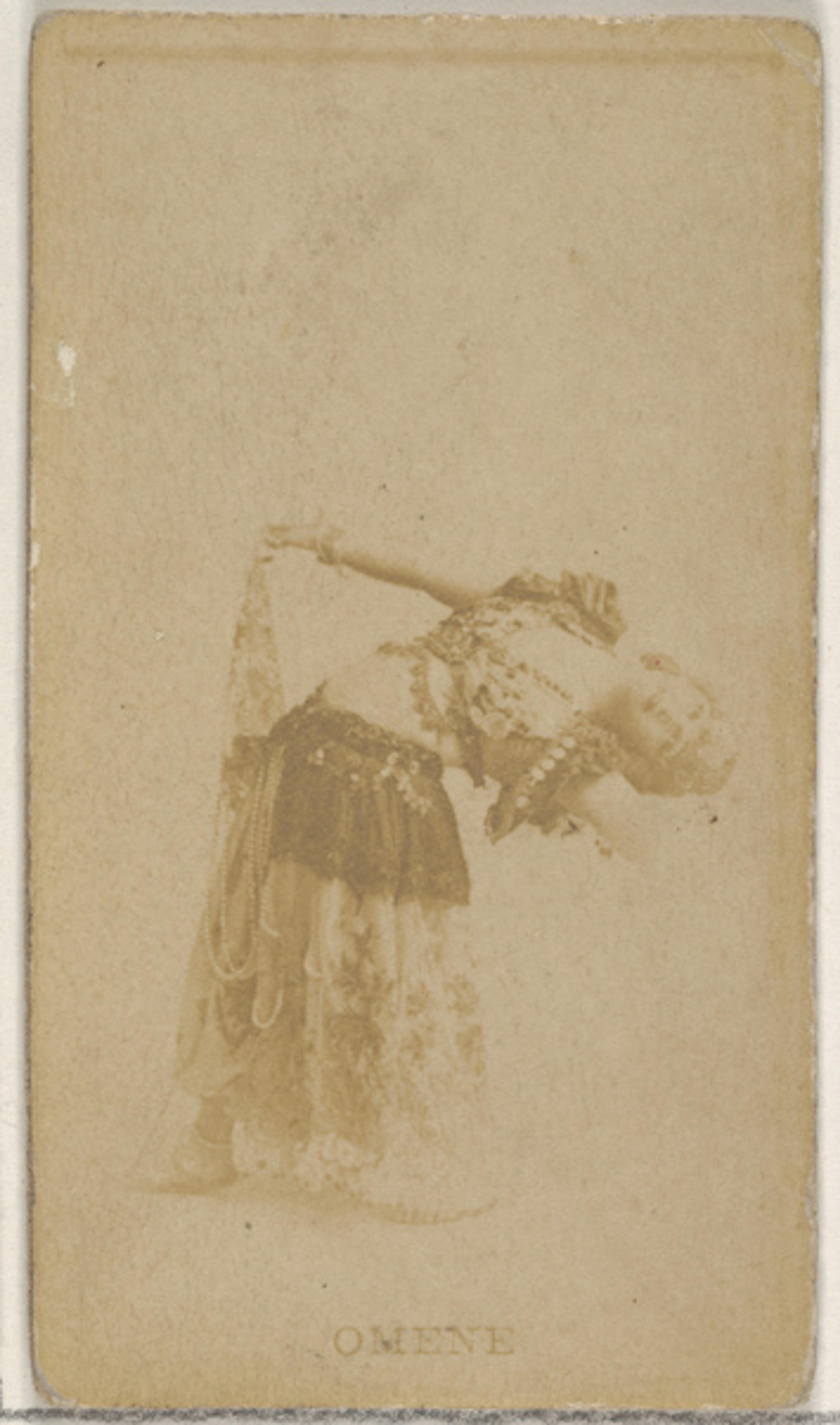 Issued by Allen & Ginter (American, Richmond, Virginia). Omene, from the Actors and Actresses series (N45, Type 8) for Virginia Brights Cigarettes, ca. 1888. Albumen photograph; Sheet: 2 5/8 x 1 1/2 in. (6.6 x 3.8 cm). The Metropolitan Museum of Art, New York, The Jefferson R. Burdick Collection, Gift of Jefferson R. Burdick (63.350.203.45.1375)