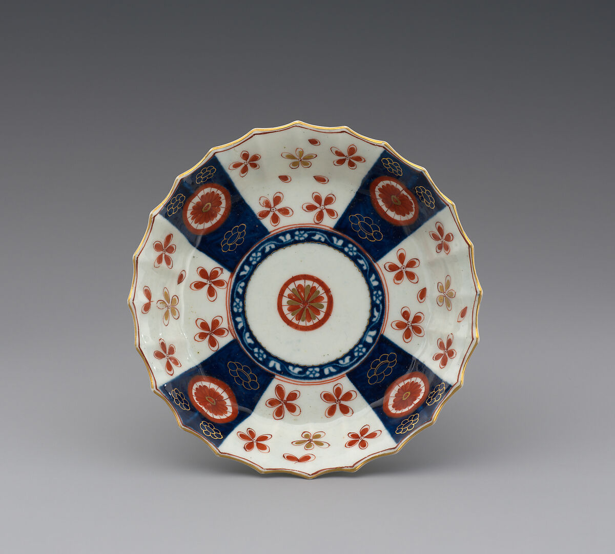 Eighteenth- and nineteenth-century porcelain tea sets usually comprised a teapot and stand, milk jug, sugar bowl, tea caddy, spoon tray, slop basin, six or twelve tea bowls with or without handles, and six or twelve saucers, a coffee pot and six or twelve coffee cups and a dish for cake. The Worcester factory made tea bowls with a handle if the decoration was European and without a handle for Oriental designs.
