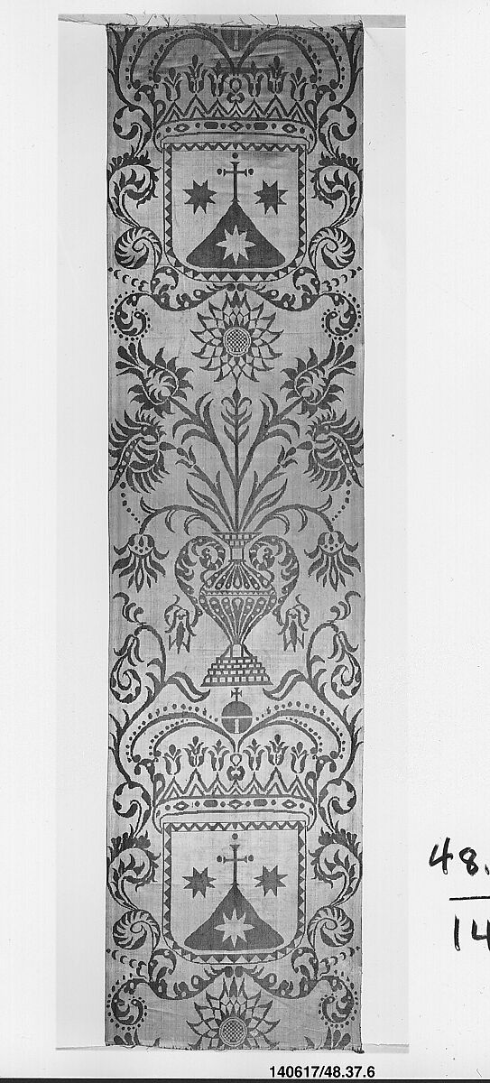 - Title: Length of silk with Carmelite Order coat-of-arms