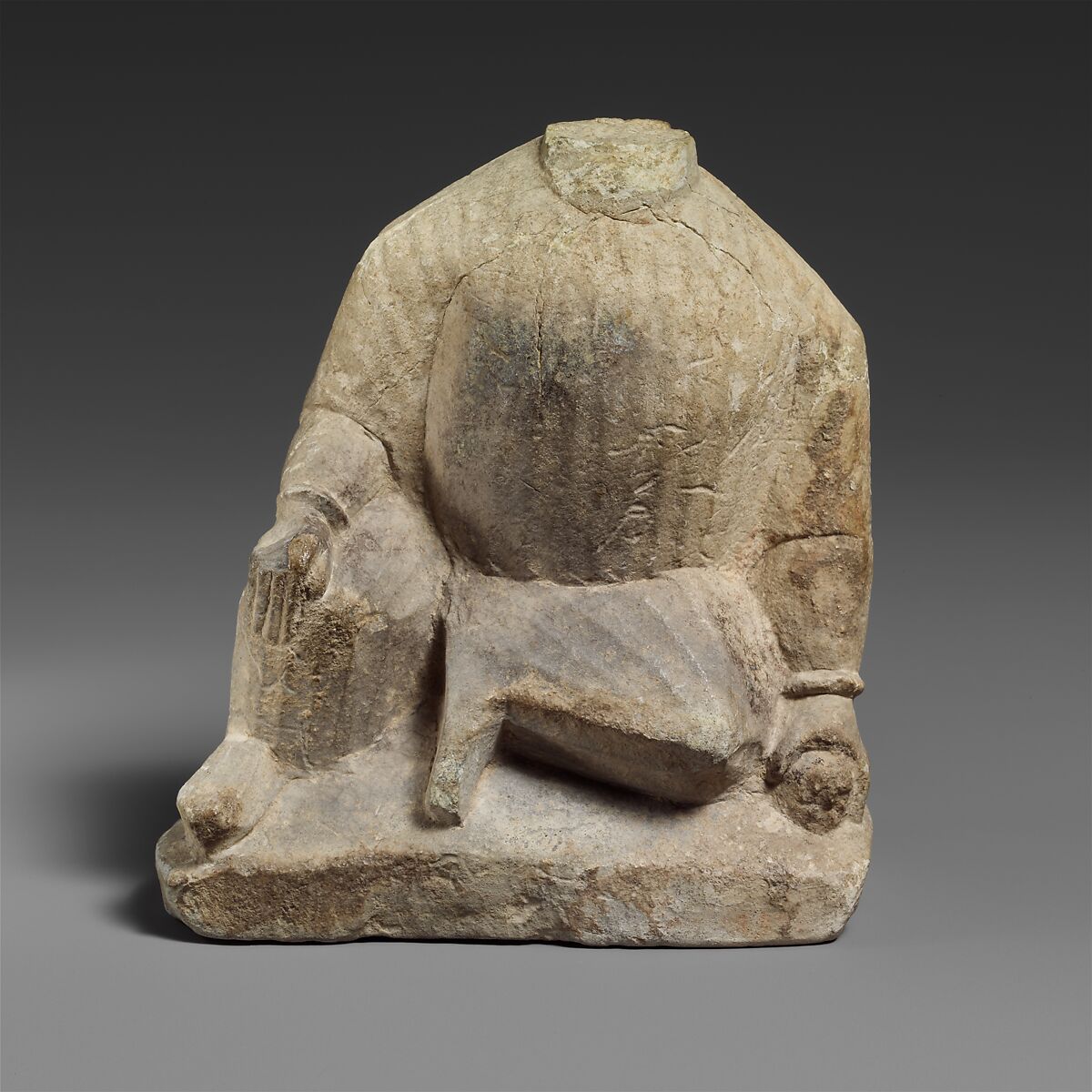 Crouching Temple Boy with dedication to Apollo.