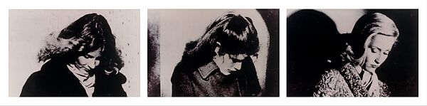 In this work, Prince deploys an array of strategies (rephotographing black-and-white advertisments using color film, cropping, enlarging, grouping according to gesture) to undermine the seeming naturalness and inevitability of the generic mass cultural image, revealing it to be a fiction of society's desires. Whether the women are deflecting unwelcome stares or inwardly musing, Prince's triptych implicates both the artist and viewer in the play of gazes. In doing so, he describes our spectacle culture not merely as an accumulation of stereotypical images, but as an internal condition that shapes identity and defines the individual's relation to society.