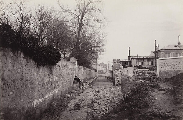 This work of art is currently on loan to the museum.With their half-built foregrounds, struggling vegetation, and inert figures (such as the one posed against the wall), Marville’s photographs of the periphery of Paris convey the sense of neighborhoods in transition. Even as the city trumpeted its glories at the 1878 Exposition Universelle, the outskirts became a familiar subject in art and literature, serving as convenient shorthand for the dislocation and exile many Parisians experienced in their changed city.