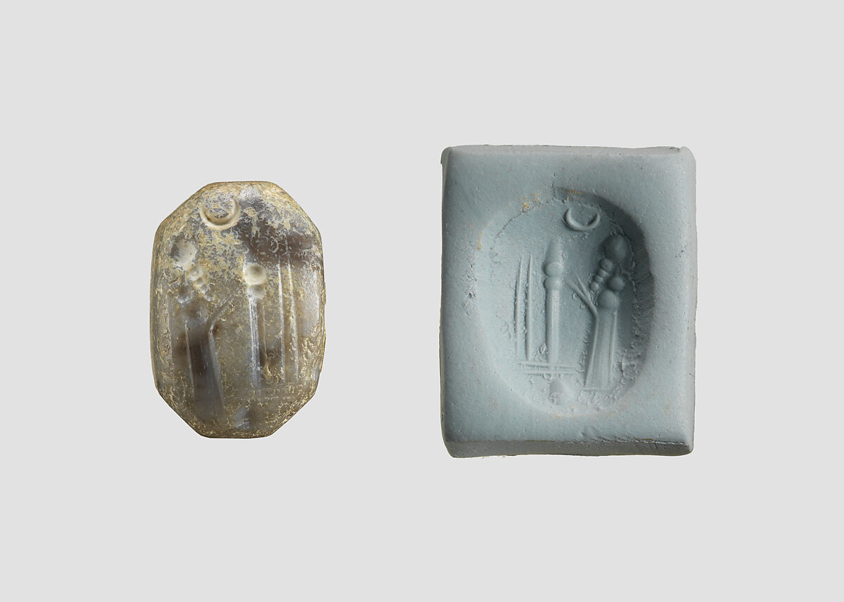 - Title: Stamp seal (octagonal pyramid) with cultic scene