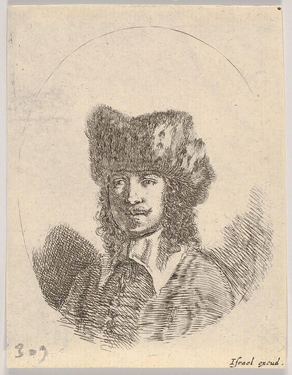 - Title: Plate 2: Head of a man with a moustache and fur cap facing left, from "Various heads and figures" (Diverses têtes et figures)