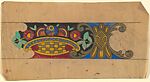Horizontal Pattern with Decorative Flowers on a Checkered Pedestal and Ornamental C-Scrolls, from a group of 158 textile designs from an unidentified French designer. The designs include brightly colored patterns and single motifs in late Art Nouveau and Art Deco styles. Most designs have been made on tracing paper and show signs of transfer. Some include instructions for execution, written in French.