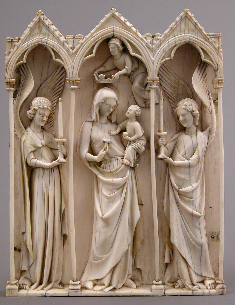 The profusion of small ivory tabernacles, such as this one, carved withthemes relating to the glorification of the Virgin, in thirteenth- and fourteenth-century Paris strongly suggests that these pieces derive from large altarpieces now lost.