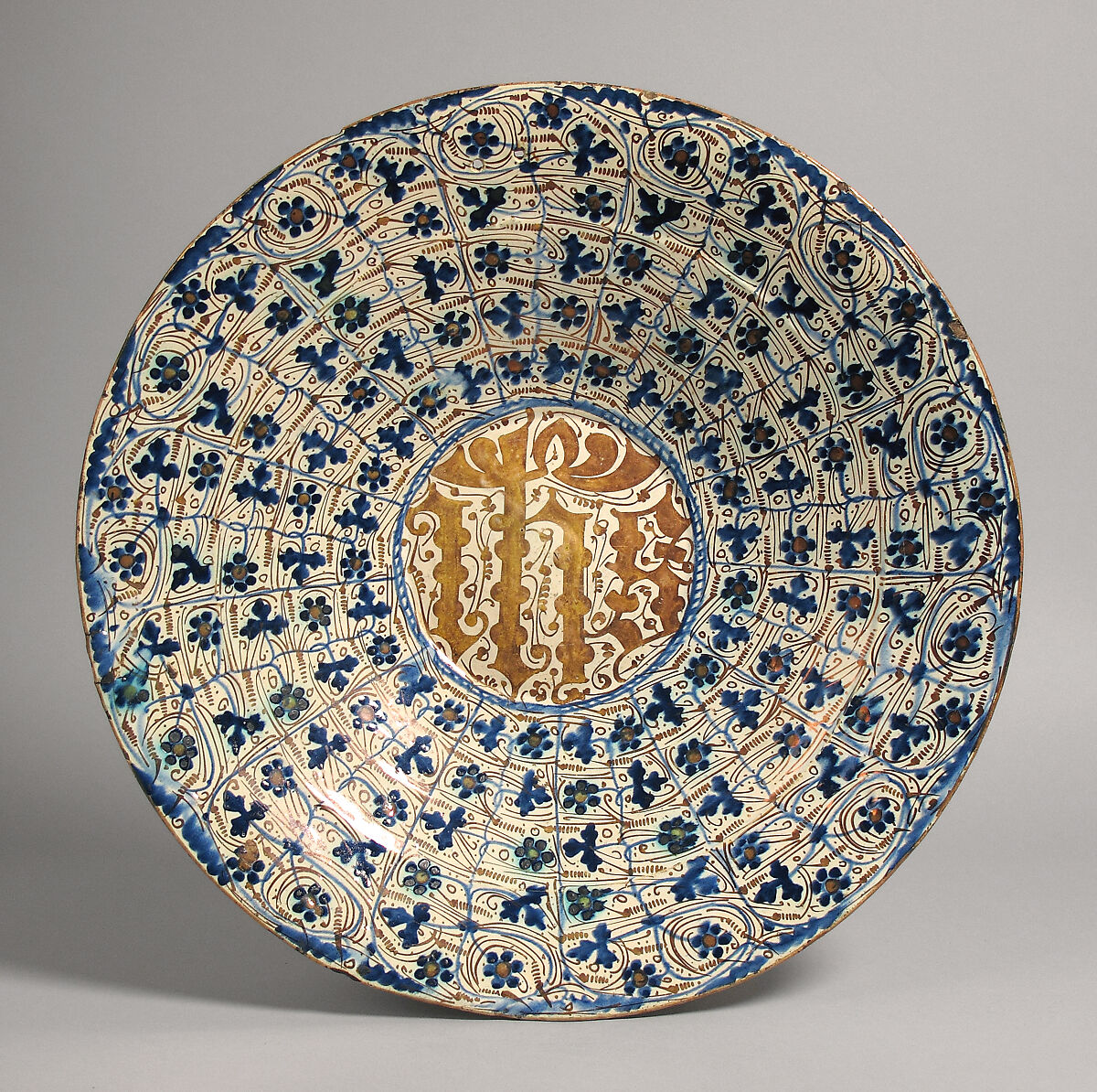 Knowledge of the technique for creating lusterware made its way to the Iberian Peninsula by the twelfth century, when most of the region was still under Islamic rule. By the 1400s, the Iberian center of lusterware production was in Manises, near the city of Valencia. Previously a Muslim taifa, or principality, the Kingdom of Valencia was conquered in the thirteenth century by James I for the Crown of Aragon, and it was here that Christians and Muslim potters worked, sometimes together, for a diverse clientele with a voracious appetite for high quality lustered wares.