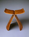 Ease of travel in the jet age encouraged a growing fusion of cultural influences after World War II. Although Yanagi's stool was designed and manufactured in Japan, it employs Western form (the stool) and material (bentwood). Its calligraphic elegance, however, suggests a distinctly Asian sensibility despite the rarity of such seating furniture in traditional Japanese culture. The stool is made from two curving and inverted L-shaped rosewood sections, each forming one leg and half of the seat. A metal rod midway between the legs serves as a stretcher and holds the stool together.