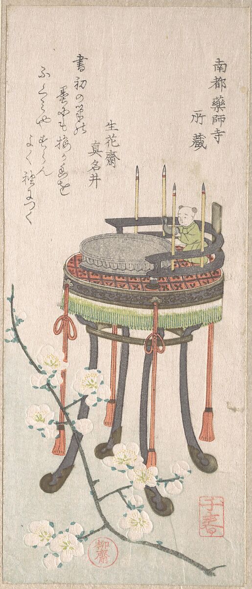 - Title: Plum Branch with Flowers and a Stand with a Writing Set