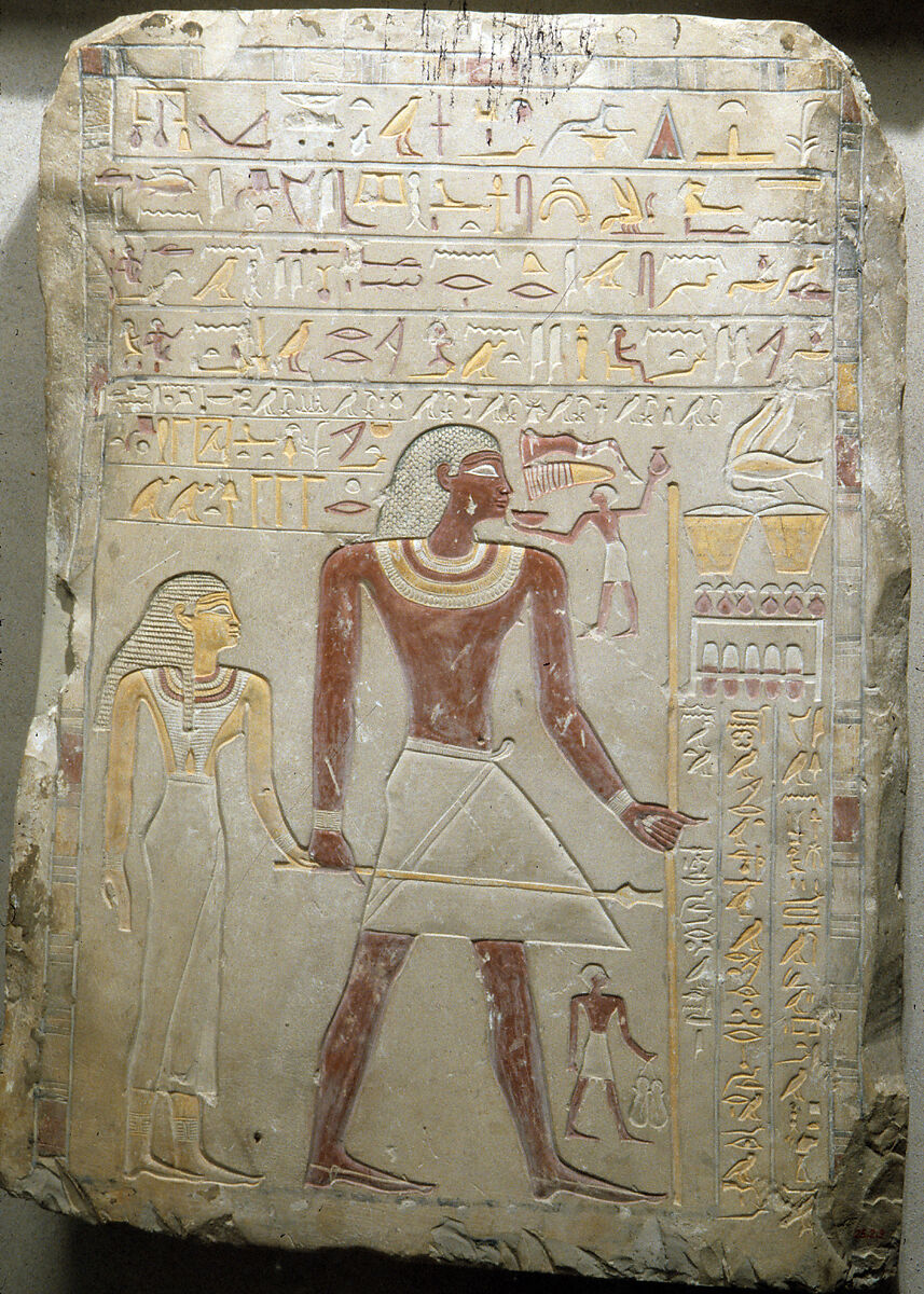 Funerary Stela of the Royal Sealer Indi and His Wife, the Priestess of Hathor Mutmuti of Thinis