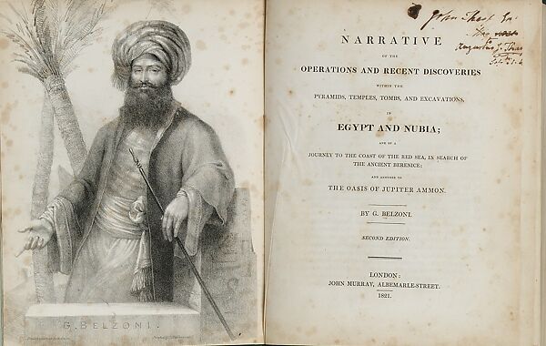 Illustrated: title page and frontispiece with a lithograph portrait of G. Belzoni