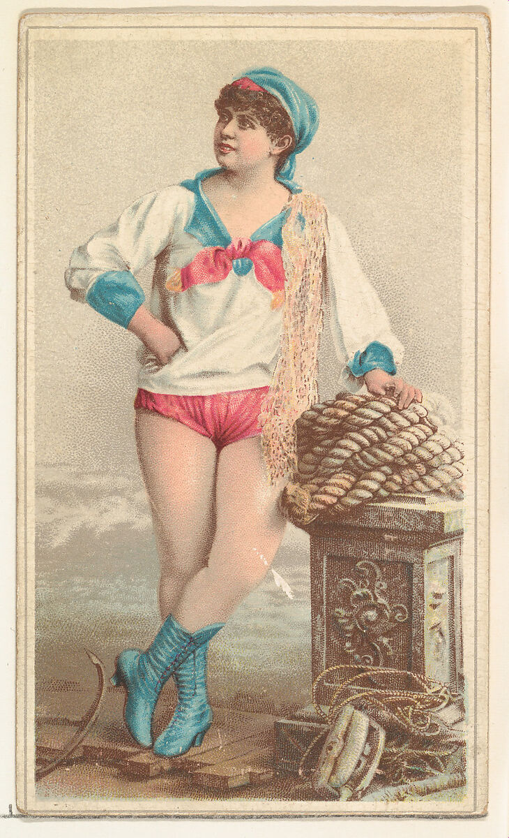 Actress wearing sailor costume with pink bloomers, from Stars of the Stage, Second Series (N130) issued by Duke Sons & Co. to promote Honest Long Cut Tobacco