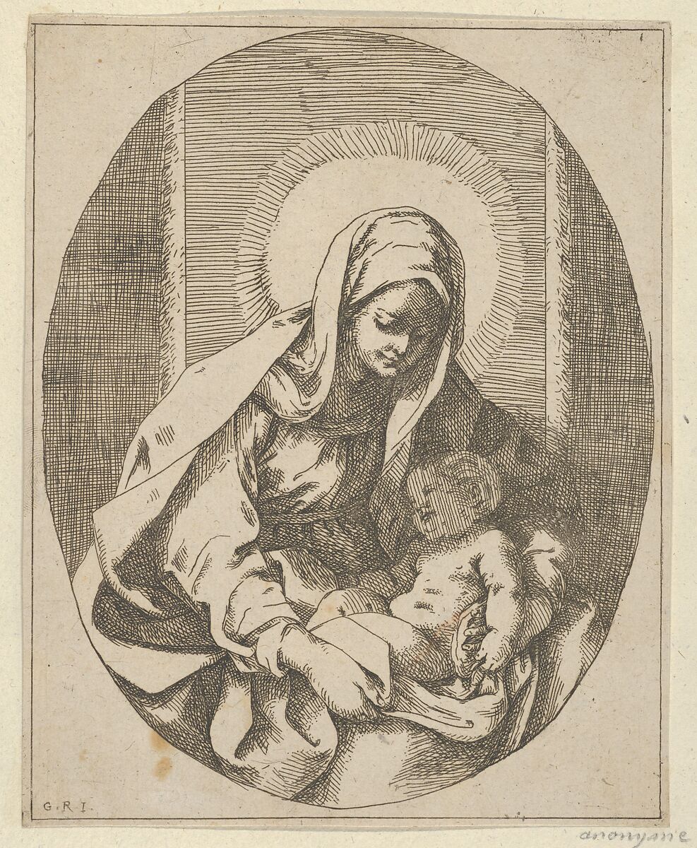 - Title: The Virgin holding the infant Christ on her lap, an oval composition, after Reni