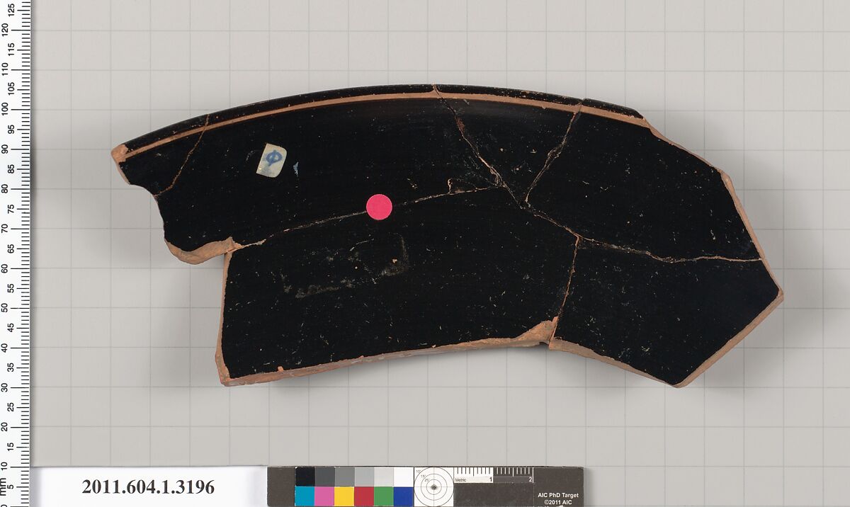 - Title: Terracotta rim fragment of a kylix (drinking cup)