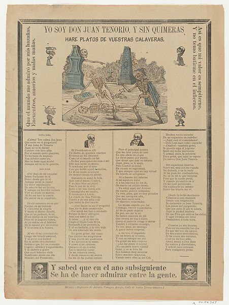 - Title: Broadsheet relating to the romantic play, Don Juan Tenorio, a corrido (ballad) in the bottom section
