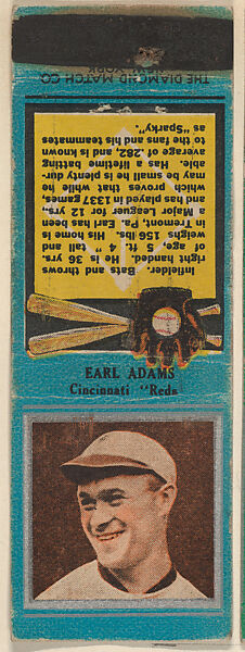 - Title: Earl Adams, Cincinnati Reds, from the Baseball Players Match Cover design series (U1) issued by Diamond Match Company