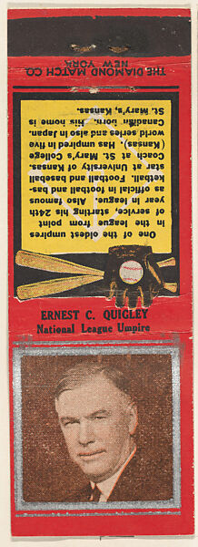 - Title: Ernest C. Quigley, National League Umpire, from the Baseball Players Match Cover design series (U1) issued by Diamond Match Company