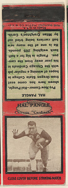 - Title: Hal Pangle, Chicago Cardinals, from the Football Players Match Cover design series (U6) issued by Diamond Match Company