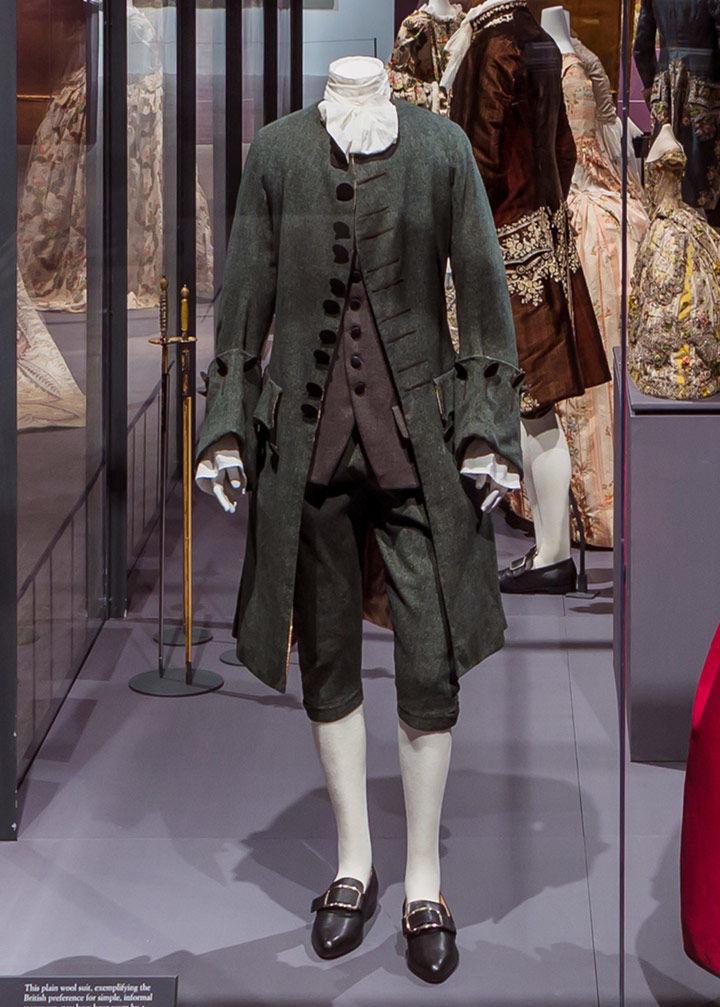 Three-piece suit (habit à la française), ca. 1778–79. French. Ribbed silk and linen (reproduction shirt, shoes, and stockings), 60 x 30 x 24 in. (152.4 x 76.2 x 61 cm). Smithsonian's National Museum of American History, Washington, D.C. (2012.0187.001)
