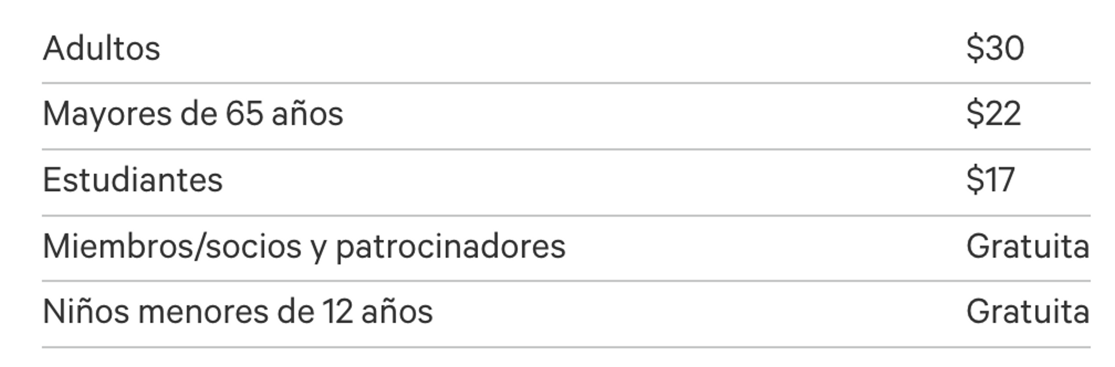 Estas entradas pueden ser adquiridas en el Museo presentando un documento de identidad válido. La entrada adquirida pagando la voluntad permite el acceso a las exposiciones, así como entrada a ambas sedes del Met válida para el mismo día.