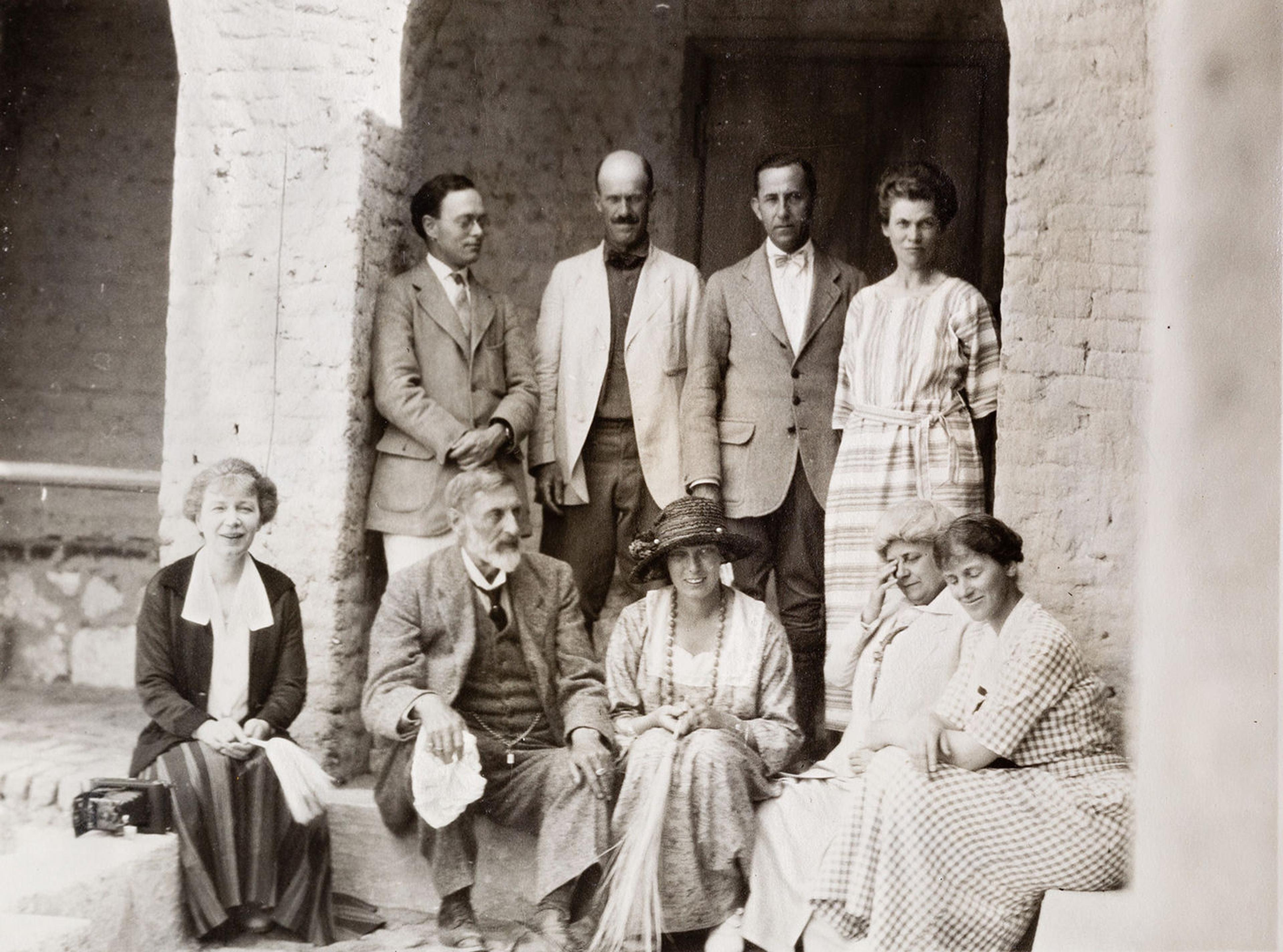 Staff of The Met's Egyptian Expedition to Egypt. Back row: Walter Hauser, Herbert Winlock, Harry Burton, Mrs. Arthur C. Mace; Front row: Minnie Burton, Sir H. Rider Haggard, Mrs. Haggard, Mrs. Armstrong, Helen Chandler Winlock. The Metropolitan Museum of Art, Department of Egyptian Art Archives. Photograph from Guest Book of Mrs. Harry Burton from the Metropolitan Museum's Expedition House, Thebes A.D. 1923–39. The Metropolitan Museum of Art, New York. Gift of Mr. Charles K. Wilkinson, 1976 (1976.200)
