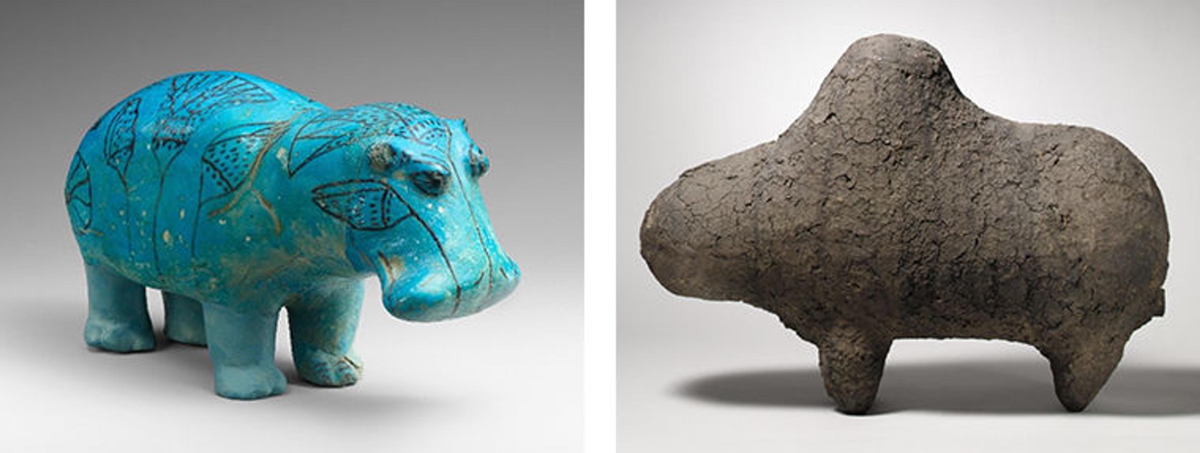 Left: Hippopotamus, ca. 1961–1878 B.C. Egyptian (17.9.1)