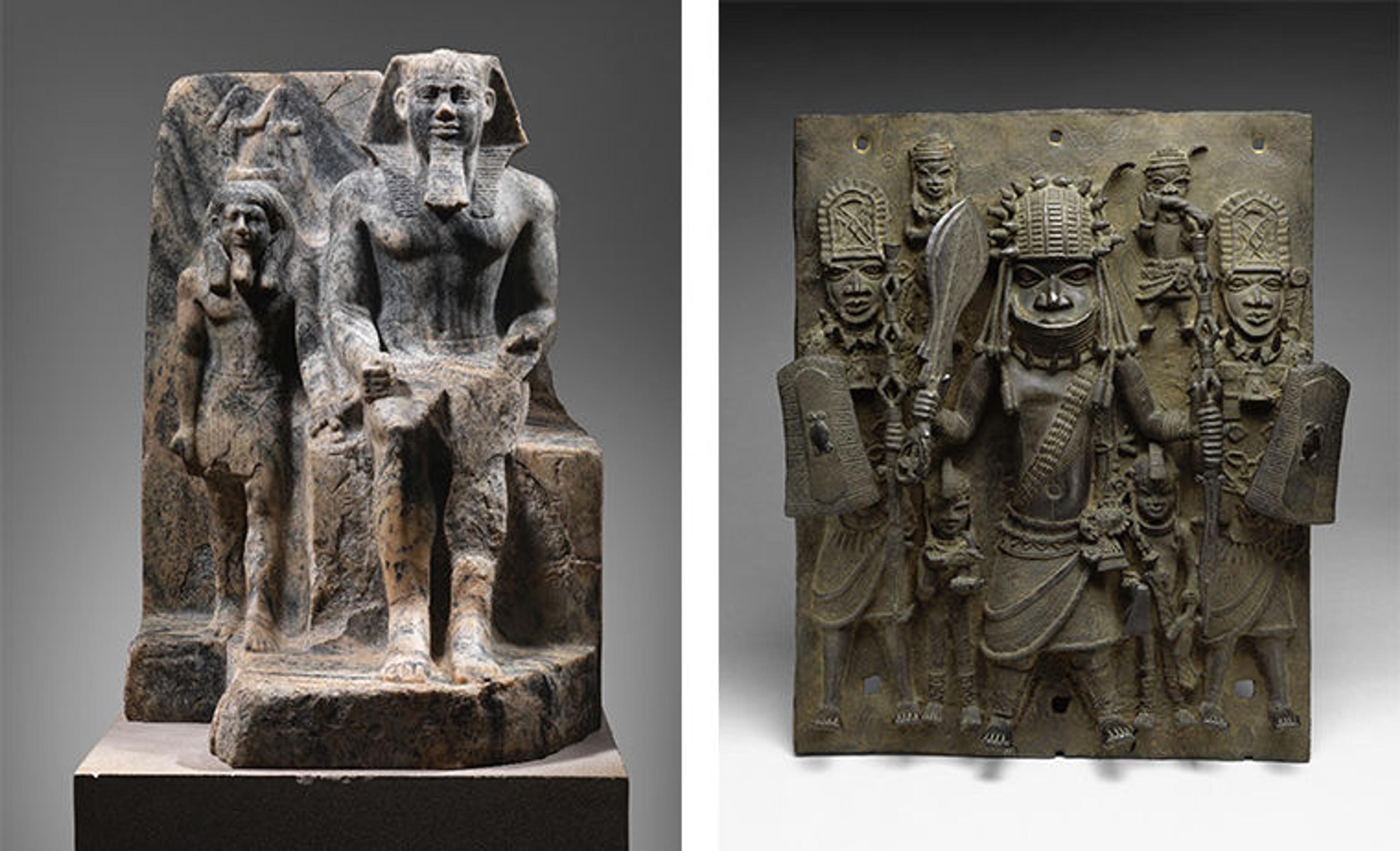 Right: Head of an Oba, 16th century. Edo artist; Igun-Eronmwen guild, Court of Benin; Nigeria (1979.206.86)