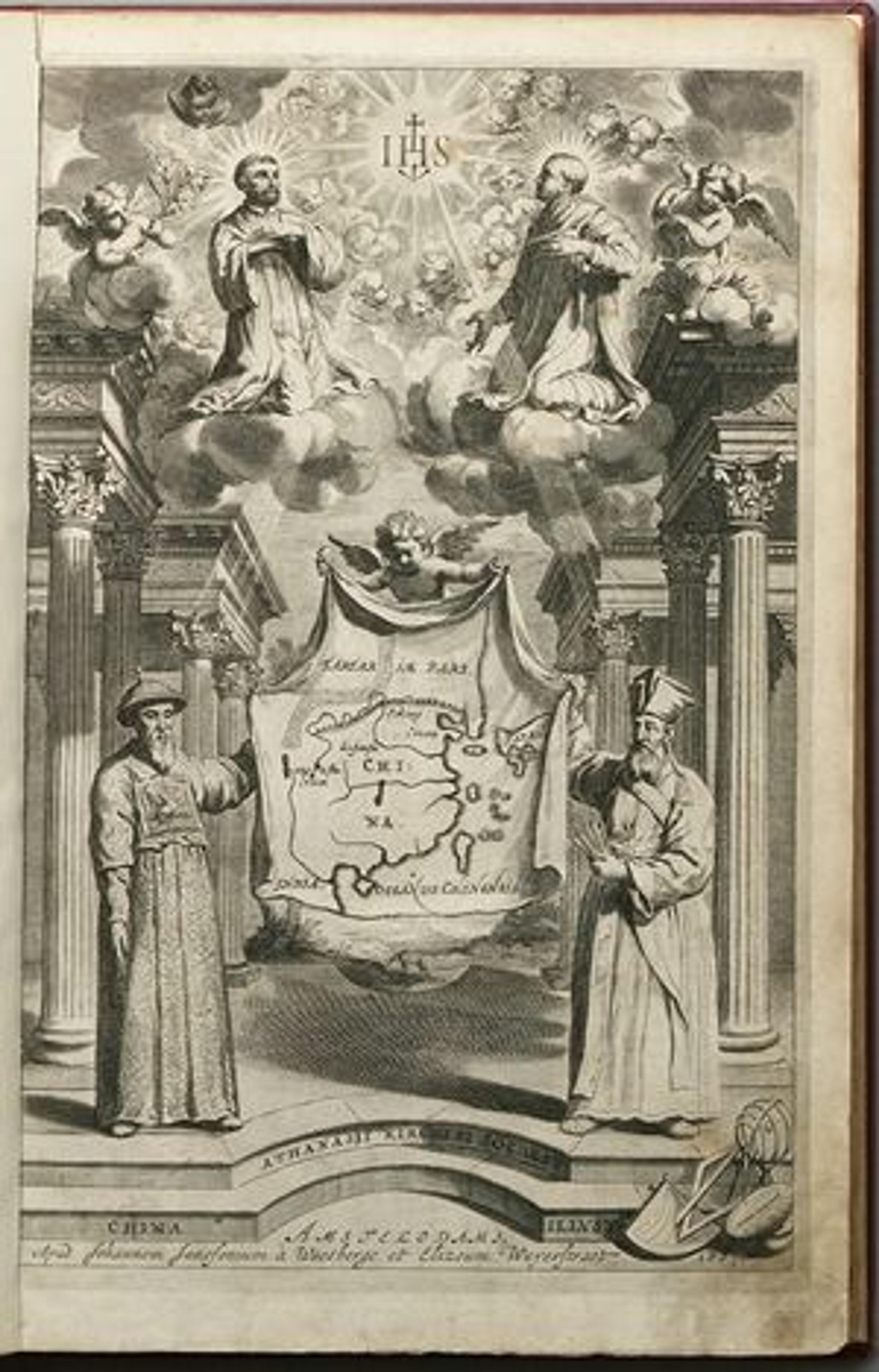 Right: Athanasius Kircher (German, 1602–1680). Athanasii Kircheri e Soc. Jesu China monumentis: qua sacris qua profanis, nec non variis naturae & artis spectaculis, aliarumque rerum memorabilium argumentis illustrata (Amsterdam: Apud Joannem Janssonium a Waesberge, & Elizeum Weyerstraet, 1667). The Metropolitan Museum of Art, New York, Purchase, Jane E. Andrews Fund, in memory of her husband, William Loring Andrews (912.1 K63 Q)