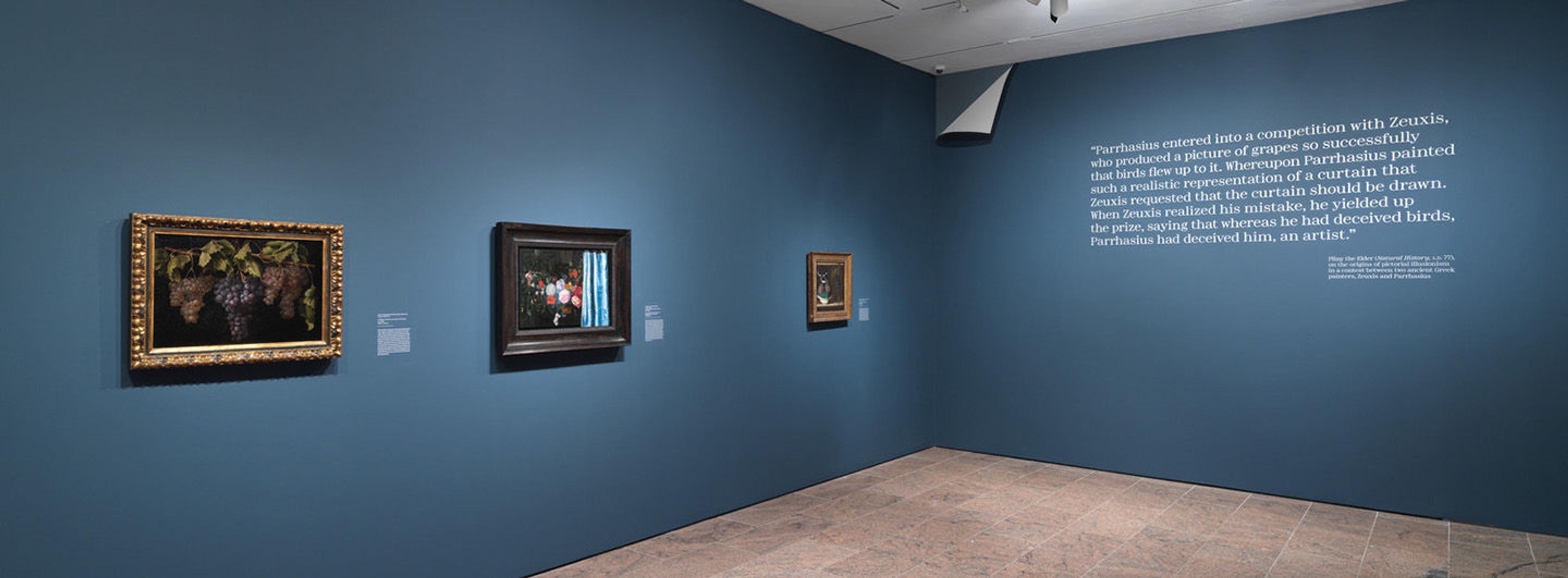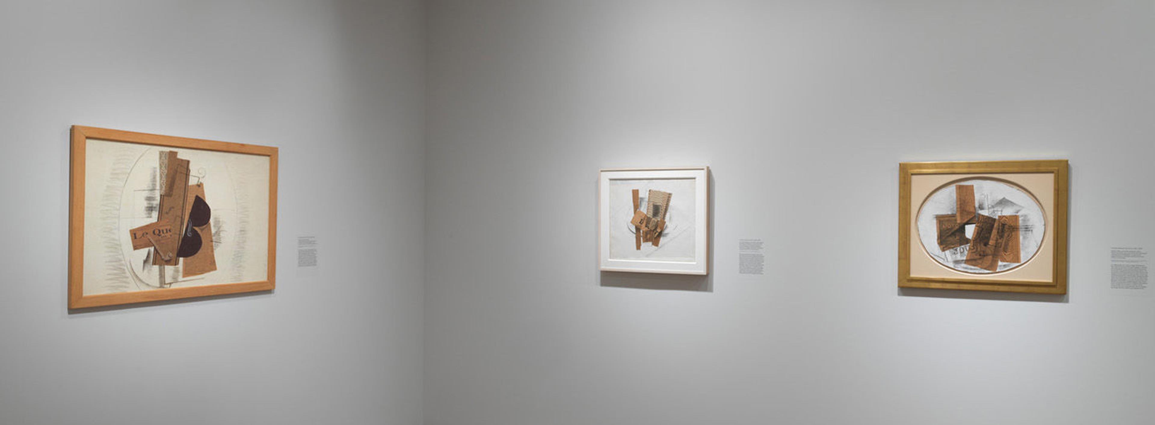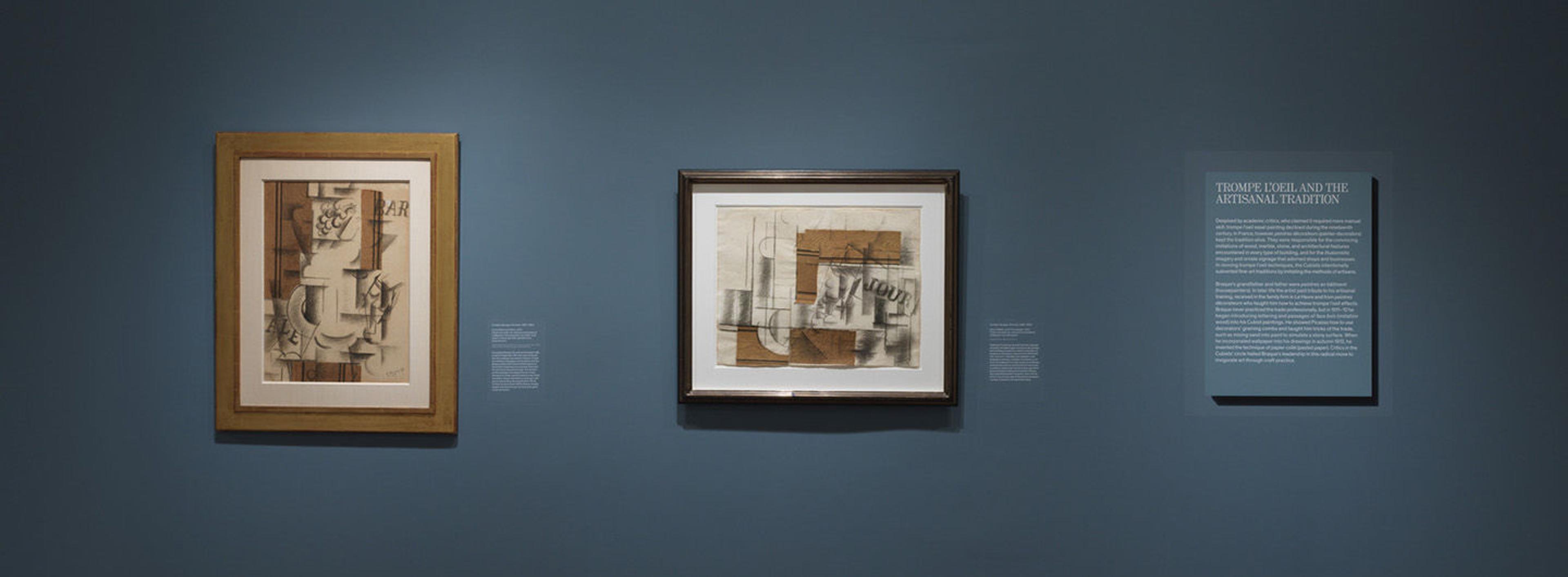 The reputation of trompe l’oeil painting declined precipitously during the nineteenth century, which may explain why its connections to Cubism have been largely overlooked. Yet Georges Braque, Juan Gris, and Pablo Picasso similarly laid bare the conventions of verbal and visual representation, filled their pictures with allusions to art and art making, and upended hierarchies of taste. They parodied and emulated trompe l’oeil strategies in a three-way contest of creative one-upmanship that accelerated with the introduction of collage techniques in 1912. The presence of actual things in the picture—newspaper clippings and illusionistic wallpapers—resulted in previously unimaginable levels of paradox and new ways of confounding the mind. Like the trompe l’oeil artists of earlier centuries, the Cubists raised provocative questions about originality, truth, and falsehood that remain relevant today.
