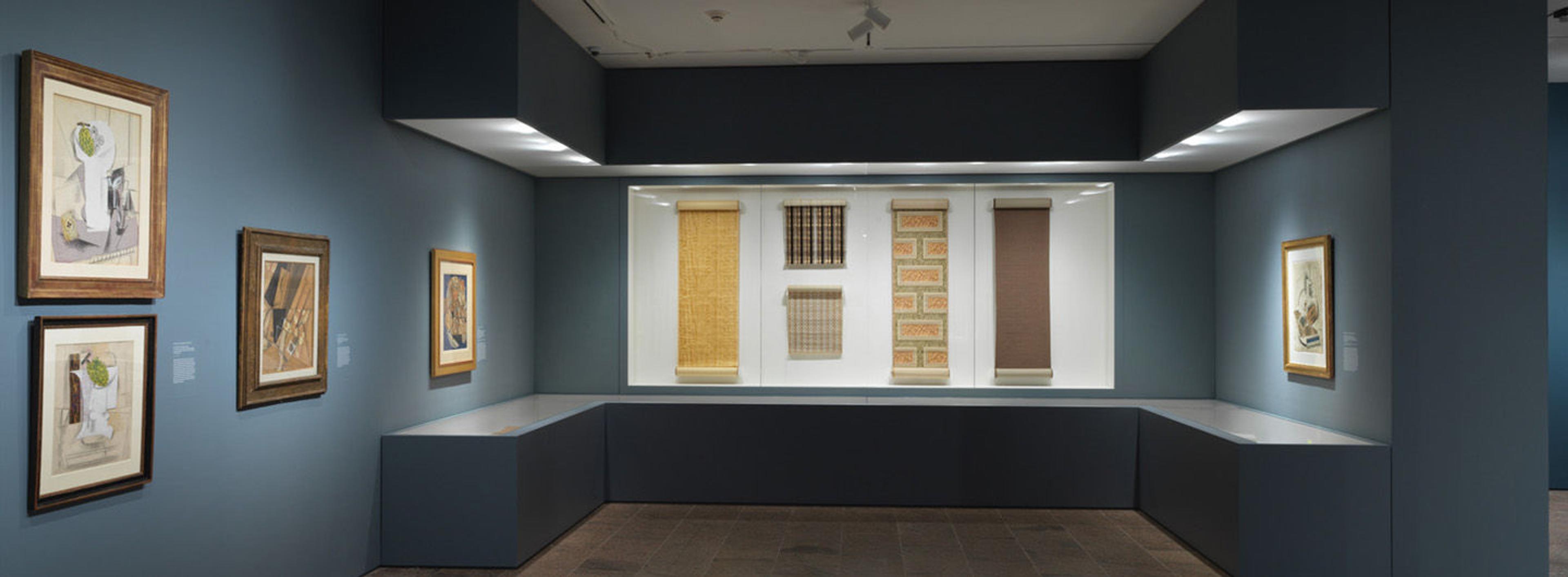 Wallpaper, described by an historian in 1914 as “the supreme art of counterfeit,” was the Cubists’ handy source of ready-made trompe l’oeil effects. Drawing on his artisanal training, Braque was the first to incorporate wallpaper in his drawings, thereby inventing the papier collé (pasted paper) technique in September 1912. Picasso followed suit a few months later, and Gris in early 1913. Rather than using the luxury hand-printed papers for which France was universally renowned, they identified with consumers of meager means by choosing inexpensive, widely available, machine-printed products that imitated natural and manufactured materials used in interior decoration.