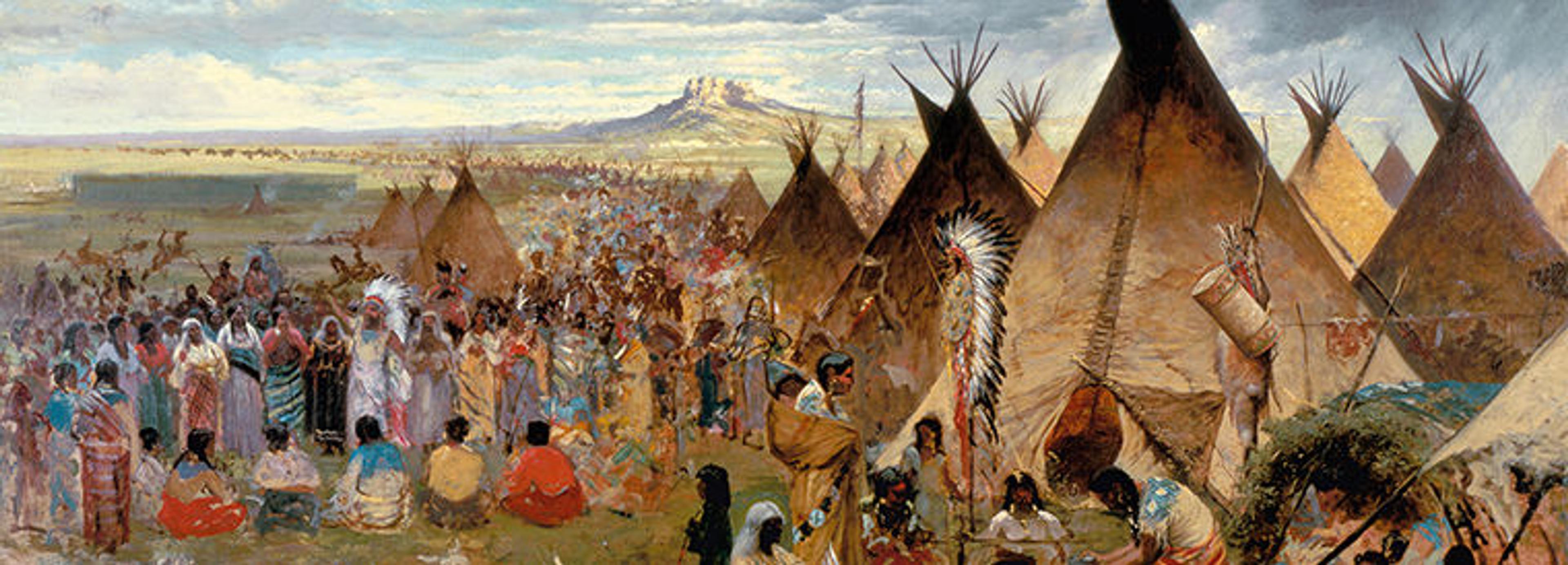 Tavernier also sought out direct encounters with Native Americans, witnessing the Sun Dance ceremony and meeting Chief Red Cloud and Sitting Bull, a lieutenant headman of the Oglala Lakota Nation. The artist moved to San Francisco in July 1874 and soon became one of the city’s leading artists, serving as a prominent member of the Bohemian Club and a founder of the Monterey Peninsula Art Colony. Over the course of his short career, Tavernier would eventually produce more than thirty paintings of Indigenous peoples.