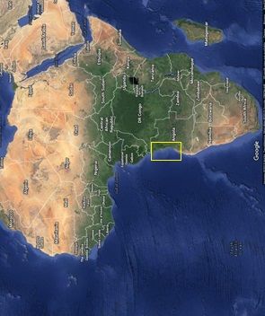 Left: A satellite view of the continent of Africa from a late-seventeenth-century Dutch perspective. Map data 2015 © Google