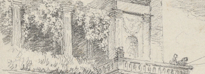 Fragonard continued to draw and paint following his return in 1774 from his second Italian voyage, but his output progressively slowed, and after the Revolution his activities shifted to museum administration. His late drawings can be stubbornly resistant to precise dating and interpretation, but his favored subjects recur again and again. Italy, in particular, loomed large in his imagination, its motifs indelibly absorbed into his personal repertoire.
