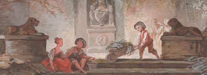 Banner image: Jean Honoré Fragonard (French, 1732–1806). Rinaldo in the Enchanted Forest (detail), ca. 1763. Brown wash over very light black chalk underdrawing, 13 3/16 x 18 in. (33.5 x 45.7 cm). The Metropolitan Museum of Art, New York, Purchase, Louis V. Bell, Harris Brisbane Dick, Fletcher, and Rogers Funds and Joseph Pulitzer Bequest; Guy Wildenstein Gift; The Elisha Whittelsey Collection, The Elisha Whittelsey Fund; Kristin Gary Fine Art Gift; and funds from various donors, 2009 (2009.236). Blog series image: Jean Honoré Fragonard (French, 1732–1806). The Island of Love (detail), ca. 1770-80. Black chalk and gouache, 11 x 14 1/4 in. (27.9 x 36.2 cm). Private collection