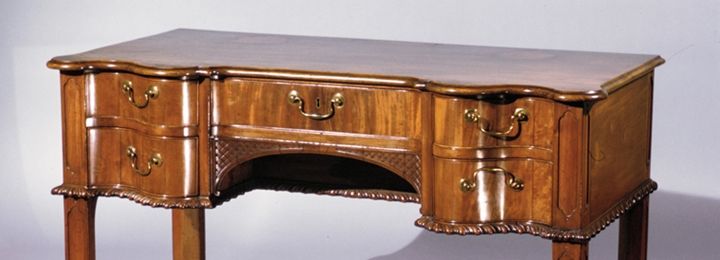 As the British Empire expanded in the seventeenth and eighteenth centuries through maritime trade and colonization, the nation's material wealth increased exponentially, as did the size of the mercantile class, with its high social aspirations. Keenly aware of the lifestyle improvements taking place among his readership, Chippendale included in the Director designs for specialized forms to accommodate more lavish entertaining, dining, and dressing habits. He also provided designs for secretary bookcases, desks, and library furniture that would evoke a sense of professional respectability.