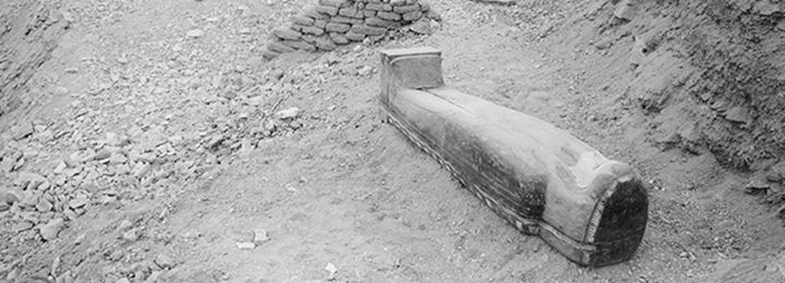 During the Ptolemaic Period, many large mudbrick tombs were built below ground. Some had vaulted roofs, while others, referred to as shaft tombs, led to chambers deep below the surface. Yet it was also common to find coffins simply set into the dirt of a sacred place. Occasionally, a burial like this might be capped by a mudbrick structure called a mastaba to mark the tomb's location.