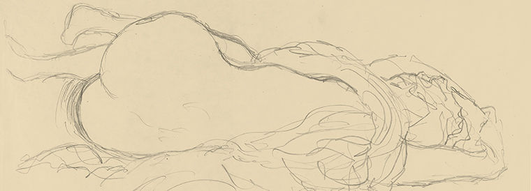 Gustav Klimt (Austrian, 1862–1918). Reclining Nude with Drapery, Back View (detail), ca. 1917–1918. Graphite, 14 5/8 x 22 3/8 in. (37.1 x 56.8 cm). The Metropolitan Museum of Art, New York, Bequest of Scofield Thayer, 1982 (1984.433.196)