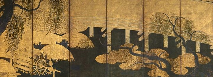 Scenes in and around the Capital (detail), 17th century. Japanese, Edo period (1615–1868). Pair of six-panel folding screens; ink, color, gold, and gold leaf on paper, image (each): 61 7/16 in. x 11 ft. 6 11/16 in. (156.1 x 352.2 cm), overall (each): 66 15/16 in. x 12 ft. 3/16 in. (170 x 366.2 cm). The Metropolitan Museum of Art, Mary Griggs Burke Collection, Gift of the Mary and Jackson Burke Foundation, 2015 (2015.300.106.1, .2)