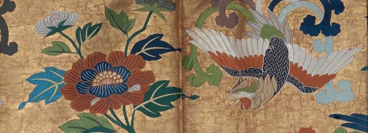 The tea master Furuta Oribe (1544–1615) gained a devoted following among high-ranking military patrons and commissioned utensils that cultivated intentional imperfection. In textile art, the taste of the elites is visible in Noh robes embellished with gold and silver, as well as in tsujigahana silk robes that intricately combine stitch-resist dyeing and ink painting. The most significant development in lacquer art was the Kōdaiji-style flat maki-e (images made with sprinkled gold and silver powder), a technique that could be applied to large furniture pieces to create bold, easily recognizable patterns.