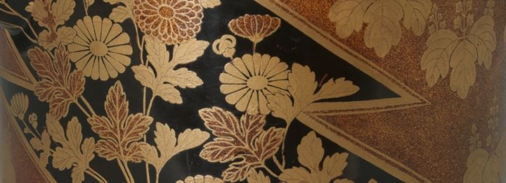 Known for consummately crafted maki-e lacquer, Kyoto artists produced writing sets, wedding trousseaux, incense boxes, and various kinds of household items featuring seasonal patterns and compositions based on literary classics. Boldly abstract Rinpa-style lacquers with varied textures were also very popular.