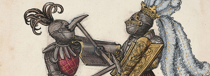 From its origins as a brutal reenactment of warfare, the tournament gradually developed into a variety of regulated mock combats in which contestants could measure and display their valor and skill in the use of various arms. Often performed in front of an audience and part of the customary celebrations of major events, these contests aided Maximilian in his campaign to be recognized as one of the greatest knights that ever lived.