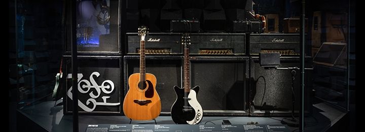 Many of the posters exhibited here are rare and represent iconic moments in rock music; a number of them feature performers and instruments seen throughout the exhibition.