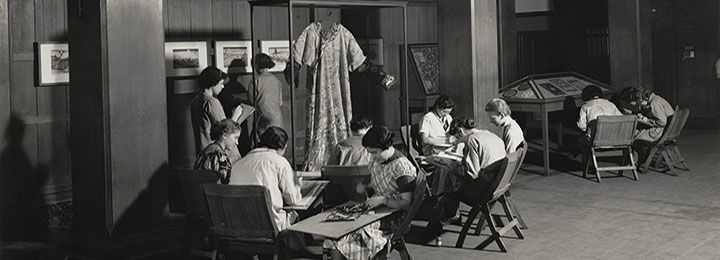 "European Textiles and Costume Figures," with students and a teacher from Hunter College’s new Bronx campus, Walton High School, 2780 Reservoir Avenue, The Bronx, 1939
