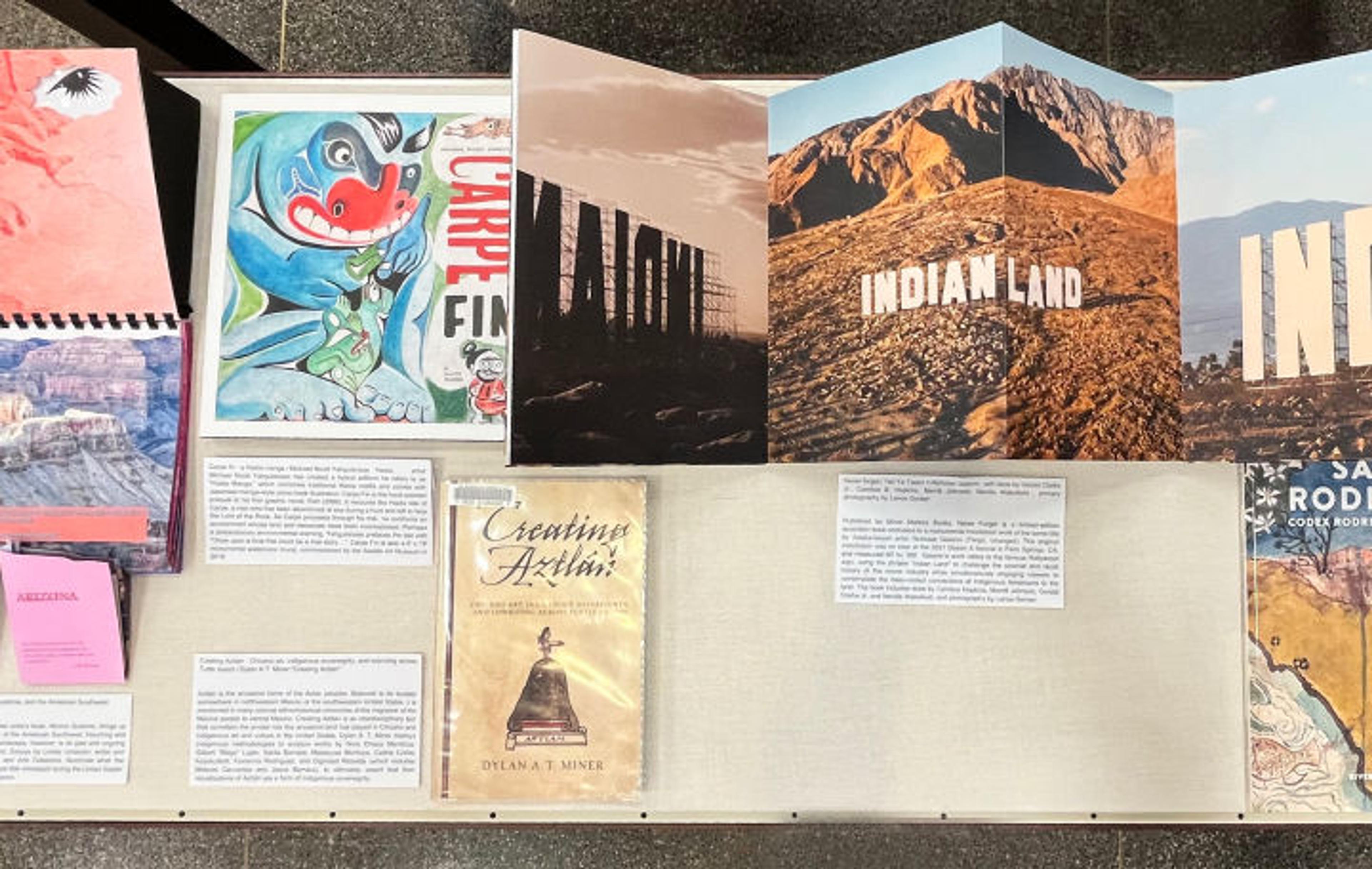 Thomas J. Watson Library resides in Manahatta of Lenapehoking, the homeland of the Lenape diaspora and a place for gathering and trading for many diverse Native peoples. Today our site is better recognized by the name Manhattan, one of the five boroughs of New York City that has been notably claimed home by countless immigrants since the first Dutch settlement in 1664. In “Shared Grounds,” the library acknowledges its presence and participation in this history and in the continuing narrative of colonial settlement. Featuring works by Latinx, Hispanic American, Asian American, Pacific Islander, and Indigenous artists, the publications in this section are united in their shared engagement with the land. Together they shed light on the overlapping histories and common experiences of the diverse communities that occupy the territories on which the United States exists. Using land as a concept, framework, or subject, these artists tackle issues of land use and sovereignty, the transformation of the landscape due to climate change, and movement and migration across physical and political borders to explore and challenge existing definitions of what it is to be American.