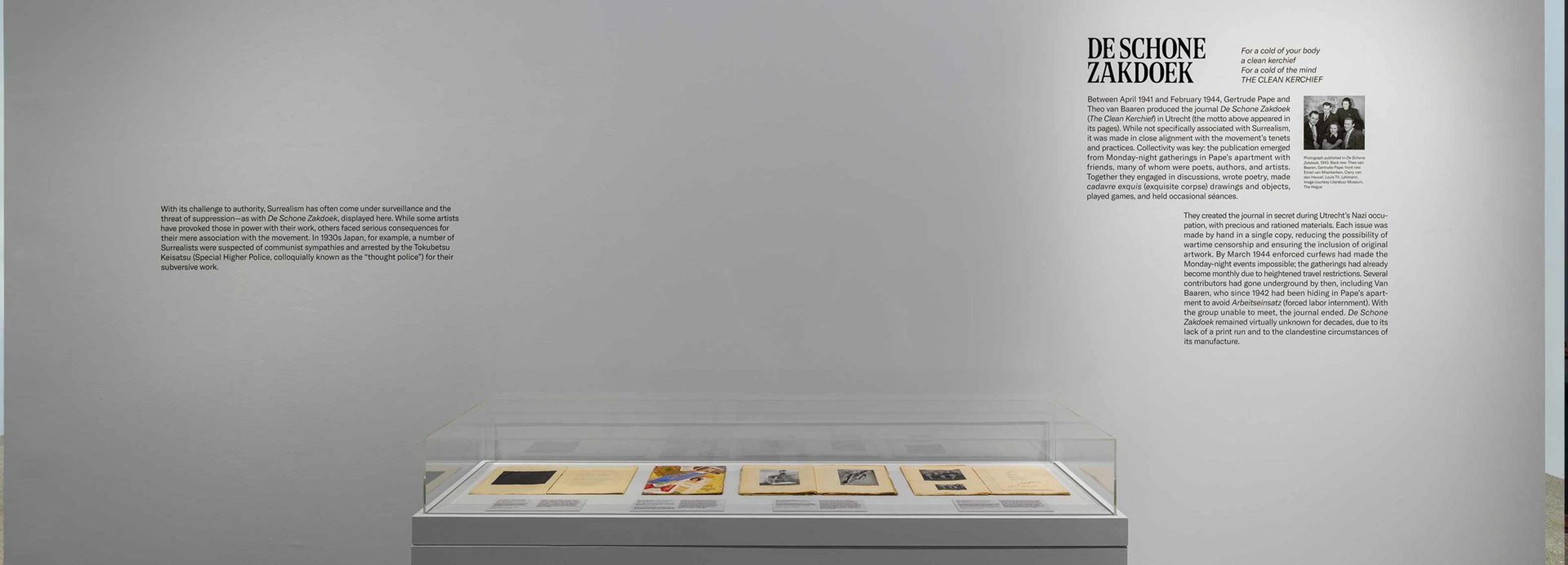 Surrealism depends upon a collective body committed to going beyond what can be done by the individual in isolation, often in response to political or social concerns. Viewed across time and place, this quality has manifested in group exhibitions and demonstrations, cowritten manifestos and declarations, and broadly shared and circulated values.