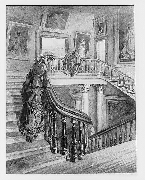 - Title: Stairway and balcony, study for "Interior of the Metropolitan Museum of Art when in 14th Street"